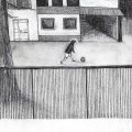 Panni stesi ad asciugare, un bambino che gioca a pallone, una vecchia bisbetica: nella storia breve di Alessandra De Cristofaro tutto si svolge senza rumori, nell'atmosfera vagamente disturbante di un geometrico cortile...